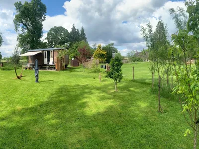 Lush self catering shepherd hut, the ultimate glamping experience, on the edge of the Loch Lomond and the Trossachs National Park, sitting in the far corner of a field at Keepers Cottage on the picturesque Cardross Estate in big sky country.