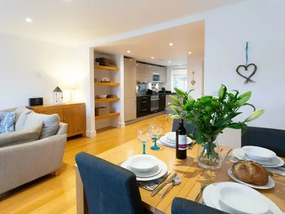 8 The Monterey is a modern, stylish holiday home with charming views over Porthleven harbour. Porthleven beach is just a short stroll away, as is the harbour itself with a unique array of shops, cafes, restaurants and public houses.Set over two floors with the ground floor being a spacious open plan layout. The contemporary, well equipped kitchen leads through to a stylish and comfortable lounge/dining area with ample seating and spacious living areas. The ground floor benefits from cosy underfloor heating and French doors off the lounge leading on to the terrace with outdoor dining furniture for the warmer months. Also benefitting from a ground floor WC