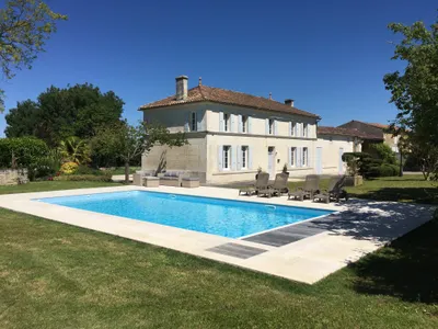 Beautiful large stone ‘Maison de Maître’ house. Own use heated pool, luxury family bathrooms, large gardens/terrace near Saintes.