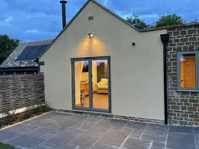 Situated in a beautiful rural location, The Old Stables has been renovated so it sits lightly in its landscape: an air source heat pump, solar panels, wood burner with logs sourced from the farm, and underfloor heating, ensure a green footprint.