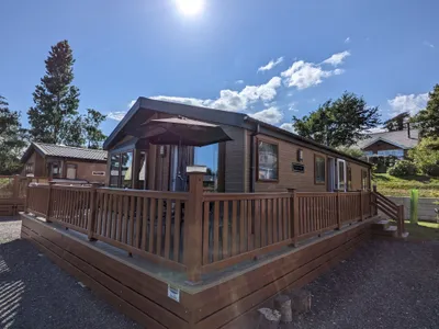 Molly’s Lodge is a detached country park lodge sleeping 4 located within a private community of holiday lodges set in peaceful, wooded surroundings with fishing lakes and ancient woodland walks. Situated on the fringe of Ryde town on the Island’s East coast. Found at the North section of this luxury holiday homes complex this well presented 2-bedroom accommodation has a fabulous private terrace with outside seating, a perfect spot for enjoying a morning coffee soaking up the country surroundings. The double bedroom has an ensuite shower room, and a family bathroom serves the twin bedroom. The living area is open plan and ideal for socialising with the family with ample dining and comfortable seating for 4. There is free wi-fi internet and a Sky Glass 55-inch smart TV for those relaxing home from home evenings or with Ryde town just over 2 miles away a short drive will take you to an array of restaurants, pubs, and eateries. Molly’s is an ideal retreat in a scenic location to thoroughly enjoy a relaxing Island getawa6y.Bedroom Details