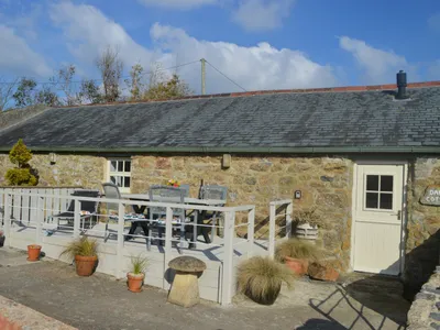 This charming single storey, spacious cottage has been tastefully converted from a traditional 18th century milking parlour. Situated down a narrow country lane with views overlooking fields, the cottage has a large, enclosed garden facing west and enjoys full sunshine all day. Visitors also have full use of a further acre which is beautifully landscaped with an orchard and herbaceous borders. The cottage has its own drive and plenty of off road parking. The interior is tastefully furnished with both modern and antique furniture and the paintings are either from Penny's studio or by her friends. The sitting room has two comfy settees, a cosy wood burner and French windows opening out onto a terrace with lovely views. The spacious kitchen/diner is open plan with ample crockery and cooking equipment. The bedrooms and bathroom are large and stylish and the whole building has a Mediterranean atmosphere of space, warmth and tranquillity. A well behaved dog is welcome. Outside there is a patio with barbeque and the well maintained garden has a lawn smooth enough for a game of croquet which, along with tennis racquets and surf boards are all in the little garden shed.Penny is a working artist and has her studio at Tregonebris where she paints and sells her work. Visitors are welcome to call in and browse.
