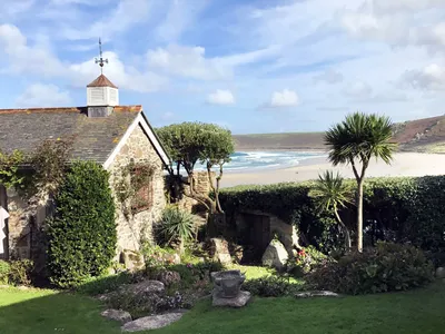 The stone walled garden surrounding this XVI century fisherman's cottage is 7 miles from Penzance and only 20 minutes walk from Lands End and overlooks the Headlands and Bay of Sennen. It is within 2 minutes walk of the beach.