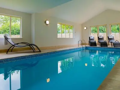 At the foot of the Quantock Hills in Somerset, Foxcombe is a holiday house made for all ages and every season. With space for 14 guests in 6 ensuite bedrooms, it’s ideal for multi-generational family stays, milestone celebrations, refined hen weekends, or relaxing getaways with friends. There’s so much here to keep everyone happy – a private indoor pool, a games area, and outdoor play equipment for the little ones. Stylish, on-trend interiors add a homely touch, helping you relax the moment you walk through the door.Foxcombe is one of five timber-clad lodges on a peaceful private site near the village of West Bagborough. Each has its own pool and parking, so you’ll have complete privacy. If you fancy exploring, you’ll find family attractions, countryside walks, activities and welcoming country pubs all close by. The beaches of the Somerset coast are less than half an hour away, while the county town of Taunton is just 8 miles off, with the M5 only a little further – making it easy to get here by car or train.