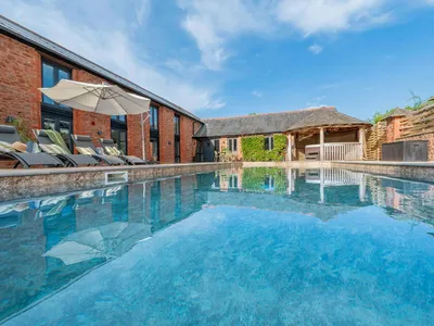 If you’re dreaming of a peaceful countryside escape for a large group, Ridgeview is the place. Set in 2 acres of private grounds, this luxury holiday home sleeps 16 guests, with 2 extra beds available (additional charge). The panoramic views stretch across rolling Somerset hills to the bracken-covered slopes of Exmoor National Park—a truly unforgettable backdrop.There’s plenty to keep everyone entertained: an outdoor pool (year-round use), hot tubs inside and out, a sauna, games room, and movie room. The covered outdoor terrace makes indoor-outdoor living effortless, whatever the weather.