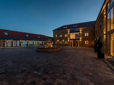 Croftview offers exceptional self catering accommodation for large groups, sleeping up to 26 guests in 13 ensuite bedrooms, with space for 4 additional guests (charged per person). This spacious and light filled property is designed for comfort, fun, and relaxation, making it an ideal choice for families, friends, corporate stays, and celebrations.Inside, there’s a generous layout that includes a stylish games room and a private spa hall featuring an indoor pool, hot tub, and sauna — perfect for unwinding whatever the weather. Step outside and you'll find a large patio for alfresco dining, rolling lawns, and a dedicated children’s play area. Nestled into the hillside at the edge of the garden is a rustic and quirky hut with space for up to 30 people, complete with a firepit and panoramic views across the fields. Beyond that lies an orchard where free range chickens roam.