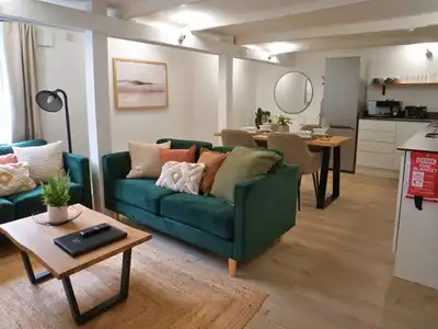 The apartment features two cosy double bedrooms and a spacious open-plan living, dining and kitchen area, creating a comfortable space for up to four guests. It includes a Smart TV, dishwasher, washing machine and everything needed for a relaxing stay.