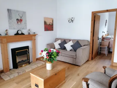 This lovely Cottage is all on the ground floor, offering plenty of space for you to unwind. Perfectly cosy for two, it’s the ideal spot for a relaxing getaway.As you enter this delightful cottage, you'll be greeted by a wonderfully warm and inviting atmosphere. The kitchen/diner is such a lovely space, fully equipped and ready for you to whip up tasty meals, complete with a charming dining table for those delightful dinners with loved ones. The roomy living room welcomes you with its comfy sofa and armchair, perfect for unwinding after a long day. On cooler evenings, you can gather around the log-effect fire, which adds a lovely touch of cosiness, or enjoy a film night together with the TV!