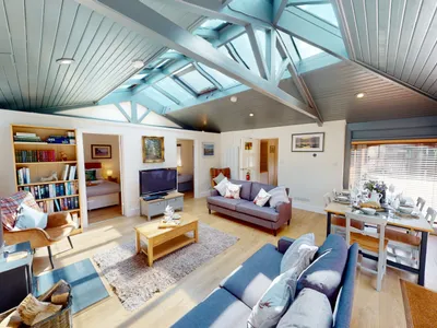 The Lodge is a single storey property with a large open plan lounge with skylights and beams with wood burning stove, a dining area which comfortably seats 8. Off this living space are 2 bedrooms. The small hall come utility area leads to the family bathroom and with modern kitchen. Facilities include two Smart TVs with Sky, WiFi throughout. Through the kitchen is a futher double bedroom with en-suite shower room.