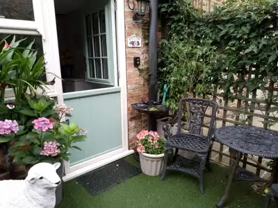 Quiet Mews Cottage with Private Suntrap Garden, Walk to Thirsk Market Square, Racecourse , Moors & Coast. 2 Minutes walk from James Herriot museum. 200 yards from beautiful riverside walk. Private seating areas outside.