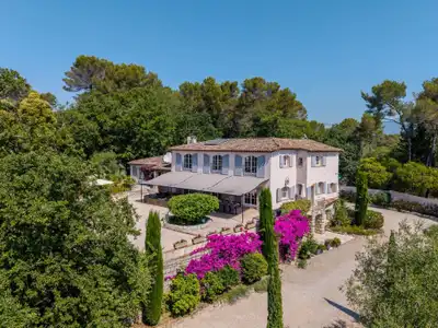 Our home on the Cote d'Azur is located in a peaceful environment with lovely views and walks through the Brague Valley. The picturesque village of Valbonne is within walking distance and it's just 20 minutes to Cannes, Antibes and the beaches of the coast. The Bastide has six air-conditioned bedrooms, to accommodate 12 guests, lawned garden, private heated pool, petanque and olive grove.An imposing stone bastide set within a beautiful private garden with a 12x6-metre swimming pool which can be heated and pool-side lounge and dining areas. The property provides accommodation for 12 guests in six spacious, air-conditioned bedrooms and five bathrooms arranged as: three double bedroom suites, a double with adjacent shower room, and an apartment with a double bedroom with garden access, plus a double/twin and shared bathroom. There's a large reception room and very well equipped family kitchen as well as a second living room/tv den. From the living room, French doors open onto a big terrace with covered dining table and seating area and Weber family gas BBQ. On the terrace is a stone fountain watering lemon and lime trees and fresh mint - ideal for mojitos or refreshing mint tea in the evening.