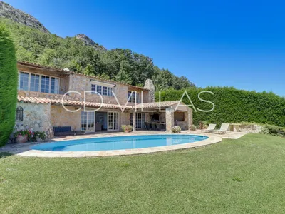 This beautiful French villa sits at the top of a quiet road offering amazing views, 5 comfortable bedrooms, air-conditioning and a wonderful garden with free-form heated pool.The stone villa, beautifully renovated so that guests feel that they are in a French country house, is styled in soft colours with lovely interior design touches in which to relax with your friends and family. Located above the bustling town of Vence, only a 10 minute drive away, the villa offers a high standard of accommodation and is the ideal holiday home in the South of France.