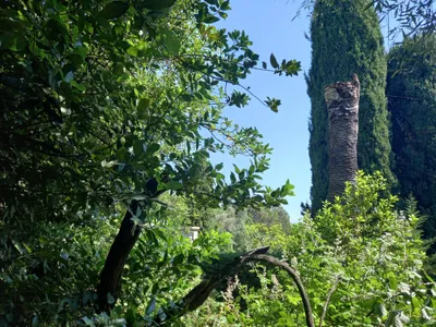 Set in garden full of old olive trees and specimen trees, this lovely old house is an easy stroll into the heart of historic Vence with all its treasures. It is a quick 6 mile drive to the beach at Cagnes, and Nice is only 20 mins away, both have lovely proms. Villa Paradou is set in a gated domaine and has full use of the communal pools, gardens and play areas, in addition to its own secluded 16m long pool. It has English Satellite TV + DVD and stereo equipment. The house is approached via an electronic gate into the domaine. It has a very large private parking area. The house is entered through a carved wooden front door which opens into an impressive hallway with its Italian chandelier. The kitchen and living room lead off from this: another hallway leads to the main bedroom and bathroom and the guest loo. The staircase twists away up to the first floor where there are 2 further charming bedrooms and a landing that leads through to the second bathroom and the 4th bedroom.There are fans in each bedroom. The central heating is oil-fired and very effective-though once again, we rarely use it in the day time as the sun pouring into the sitting room warms the whole house up even in the middle of winter. Awnings shade the living-room during the summer.