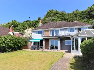 Pointe South is a three bedroom detached home sleeping 6 situated in an elevated position enjoying lovely southerly aspect sea views in the picturesque seaside resort of Ventnor on the Island’s south coast. Beautifully presented this refurbished home has a balcony accessed off the twin and double bedrooms, please mind your head as the opening is low. A canopied terrace and conservatory are great features to take in the stunning sunny aspect. Accessed up 30 steps from the parking bay at the front, this home is perfectly set up for a seaside family holiday, however we suggest the access makes it unsuitable for those with mobility issues and care must be taken at all time using the steps. The accommodation is arranged over two floors and has a beautiful modern kitchen, stylish downstairs bathroom, separate downstairs w/c and an open plan living/dining room comfortably equipped to cater for a family of 6. The open plan living area focuses on the view and with the patio doors opening onto the terrace for al fresco dining. There is a king-size, a double and twin bedroom to accommodate the family all with stylish built-in wardrobes. The shower room has been furnished with high quality fixtures and this stunning luxury home has south facing front gardens and off street parking. There are additional spaces available on the street. A perfect destination to thoroughly enjoy your Isle of Wight family holiday.From the street level hardstanding 30 steps with a handrail access the front entrance over the gardens.
