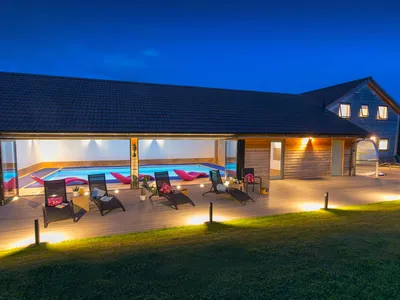 Fuzzy Orchard is a stunning timber-clad holiday lodge designed for unforgettable group getaways in the heart of the West Country. With 6 gorgeous ensuite bedrooms sleeping 12, plus 2 extra guest beds available (for a small additional charge), this is the perfect place for family holidays, milestone celebrations, and relaxed breaks with friends, all year round.This is a house that’s all about the good times. Take a dip in your private indoor pool, unwind in the sauna, or challenge each other to games room showdowns. Outside, the fun continues with a spacious garden, a covered hot tub, a cosy year-round BBQ lodge, and a dedicated play area for the little ones. There’s something for everyone, making it ideal for multi-generational escapes.