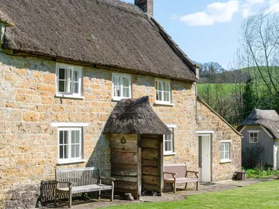 Gore Cottage sleeps five, plus a cot: upstairs there are two double rooms, one with a double bed, the other with two singles, and a single room downstairs, which is the room with the telephone.The compact bathroom (with full sized bath and basin) is downstairs, off the kitchen which is an ideal arrangement for people with young families. The kitchen is large enough to eat in and the separate WC and washbasin are also downstairs; there is another WC in the thatched garden shed.