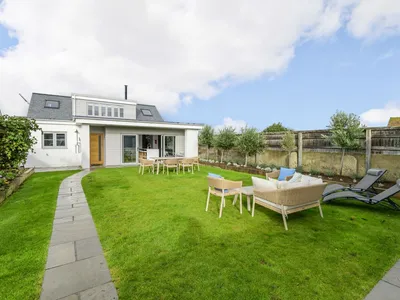 The house is very well equipped as a holiday let and has numerous bonus features to make your holiday special. There is a bar area in the open plan living space, a wood burner for those cooler winter months, a spacious utility room to hide all the coats, boots and holiday paraphernalia and an outdoor shower for hosing off after a trip to the beach. The garden is secure and a good size with sitting area at the end to catch the evening sun and a large lawn for family fun. The interiors throughout are stylish and of good quality.
