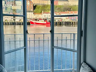 A Stunning cottage with a balcony over the harbour in the heart of the old town of Whitby. This recently refurbished cottage has stunning views over the harbour from every room. The kitchen is modern stainless steel and is well equipped with a large fridge/freezer, oven/hob, Nespresso coffee machine and washing machine. The living room has 2 comfy arm chairs and a dining table placed to take full advantage of the great views. Up the spiral staircase to the double bedroom with a bath in the bedroom, shower room with a large shower cubicle, wc and wash basin. A second spiral staircase leading off the double bedroom leads to a single bedroom allowing us to accommodate 2 people that are not a couple or a couple and a child ( available upon request).Bedding and towels are provided.