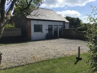 Ivy Barn is a lovely detached cottage ,part of the Helscott Barn complex it is set away from the others with a large garden with views over the countryside.The stable door opens into the living room with galleried twin bedroom ( twin beds can be connected to make a super king size double), a pretty twinkling chandelier casts a gentle glow overhead.The living room has two lovely velvet covered sofas and wide screen smart TV, stairs lead up to the gallery with twin beds ideal for both family and friends.The master bedroom is off the living room with a hand made teak 4 poster bed and en suite shower room, the family bathroom with huge corner bath is also on the ground floor.The separate kitchen has all the mod cons you would expect, dishwasher, fridge/freezer and microwave, there is also a BBQ on the patio, a window overlooks the view.The cottage is all on one level downstairs and suitable for holiday or business use all year round. This cottage has a Friday start day and is booked on a weekly basis during peak periods May to October and school holidays.Short breaks October to May. Pets welcome at £35 each per booking. Private hot tub situated in the garden and can added at a surcharge of £125.Further details