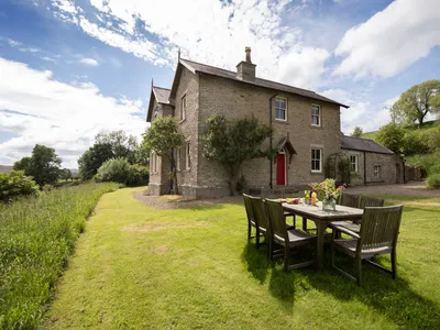 Inside, The Old Vicarage seamlessly blends traditional charm with modern comfort, sleeping nine guests (ten by arrangement) across its five elegantly appointed bedrooms. The house features several luxurious living areas, including a large sitting room with a cosy wood-burning stove, a formal dining room perfect for celebratory meals, and a well-equipped farmhouse kitchen designed to cater to large groups. Each room is thoughtfully and imaginatively decorated, offering a warm and inviting atmosphere, with large windows that frame the awe-inspiring views of the surrounding countryside.