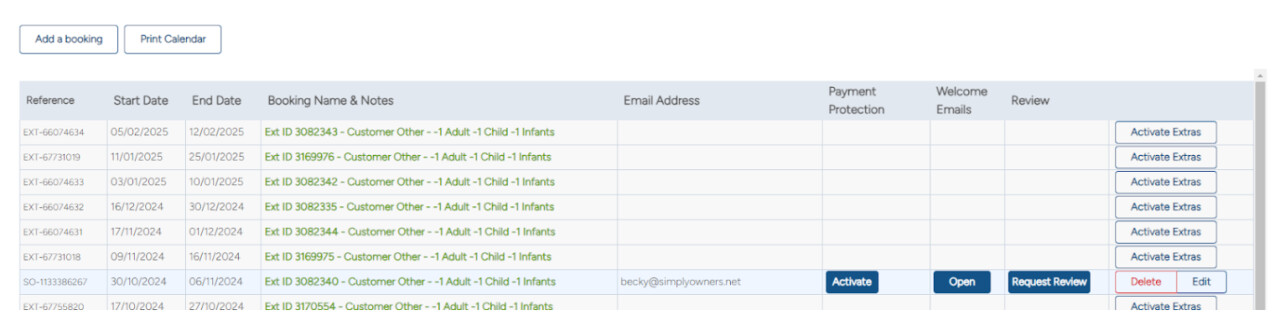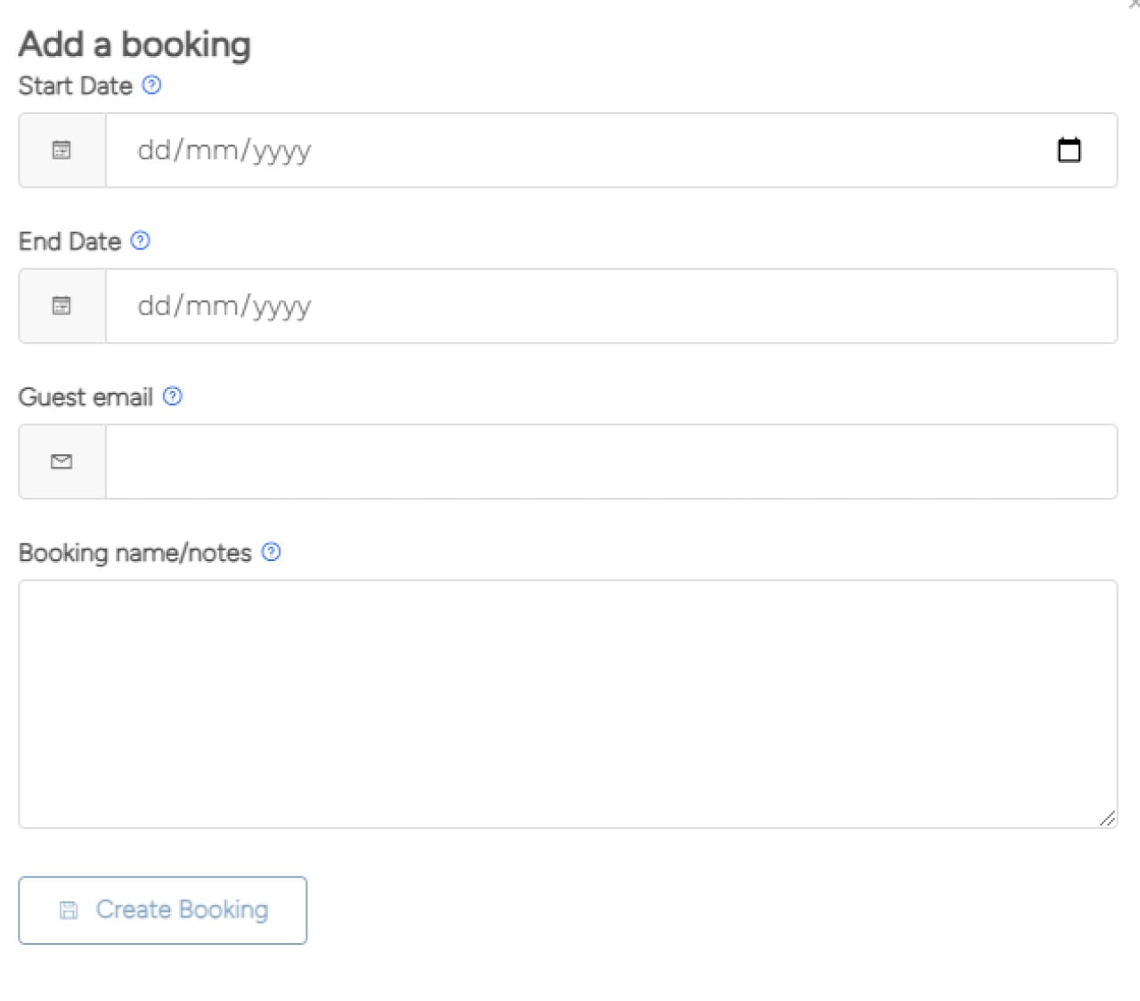 Please enter the information requested and click ‘Create booking’, this will then appear in your bookings table, in reverse date order (so that all future bookings are at the top of the page). You’ll also then see it appear as blocked in the calendar at the top of the page.