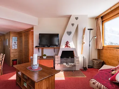 This spacious 74 M2 5th floor apartment easily accommodates 8 guests. Arranged on a single level, the large entrance hall with ski and boot storage gives access to interior hall, large double bedroom with ensuite bathroom, family bedroom with double bed and bunk beds + large family bathroom - modern fitted kitchen - dining room - living room with wooden fireplace - balcony with spectacular views.