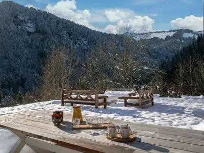 CHALET OURSON DU PASSIEU - Saint-Nicolas-la-Chapelle - Flumet 250 m2, 5 Bedrooms, 5 Bathrooms Sleeps 10 (max 9 adults, 1 baby) Slopes 5 km, Village 2.7 km Car recommended Surrounded by nature, great views Sauna, terrace and garden Great skiing minutes away OVO Network is the market leader in premium chalet rentals in authentic mountain destinations. Chalet Ourson du Passieu is an OVO Network property. The OVO Network team’s opinion - Chalet Ourson du Passieu is a newly-renovated farmhouse for 10, with five bedrooms and five bathrooms and over three floors. Don't be fooled by the chalets's charming traditional exterior - once you step through the doors you'll find a comfortable, modern home, with stylish decor and all the facilities you need to help your holiday go without a hitch, including a well-equipped kitchen, a separate laundry room, five stylish bath and shower rooms, a sauna and an open-plan living area that opens on to a balcony. The bedrooms are all well-appointed, with three doubles and a bunk room, each with their own (not necessarily en suite) bath or shower room. But the final bedroom, the master suite on the top floor, really takes the prize! From the bed you look out over a stunning view, which is even better if you step out on to the balcony. But despite its idyllic setting, Chalet Ourson du Passieu is only a five-minute drive from the ski lifts, shops and restaurants of Saint Nicholas La Chapelle and Flumet, and just a 15-minute drive from Megeve. In the summer you can spend a sunny day at the leisure lake in Flumet, enjoy a gentle stroll along the Arrondine river or head for the peaks for a more challenging hike. Free wifi, cleaning, towels & linen included. NOTE: Free wifi. Cleaning, linen and towels included!Reviews