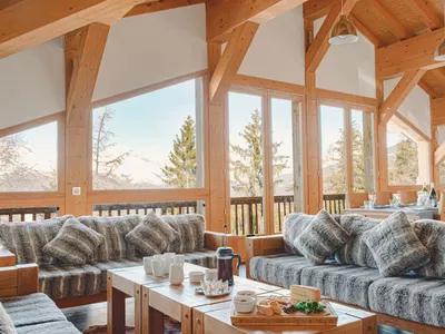 Chalet Flocon has an exceptional open plan lounge, kitchen and dining areas with stunning views.