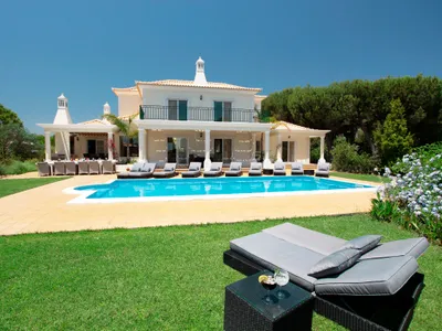 Beautifully designed, 7 bedrooms, (7 bedrooms en-suite, plus 1 toilet), set in a large private plot near Vale do lobo and Quinta do lago, at 2,5 km from Vilamoura.Private pool, cinema room. Games room, with a fantastic Gymnasium! Heating pool and Hot tub available!