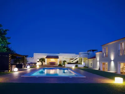 Traditional farmhouse and separate apartment situated in the famous village of Sao Lourenco on the outskirts of the prestigious golden triangle and a stones throw from Quinta do Lago and Vale de Lobo. Village location with large secluded walled garden with fruit trees, containing private pool (heated if required), games room, and parking. 5 mins from sandy beaches, premier golf courses and the full range Michelin star to good value restaurants. 500m from Almancil town. 10 mins from Faro Airport. The property is full of character and has fantastically planned layout central to the pool and garden area, suitable for multi generational families and large parties.Outside bar with 10 stools and lounge area. Large gazebo by pool with seating for approx. 10. 12 loungers. Outdoor dining for 26. BBQ and giant paella burner/ 4 fridges and ice machine. Fully kitted games room/pool table/table tennis/air hockey/cinema projector/playstation and book library/sofa beds and bunk beds. Driveway for several vehicles. Garden with fruit trees, not overlooked/walled garden. sleeps 26 comfortably ( for an occasion but wouldn't recommend full week) 1.Air con/heating included in high peak price, chargeable other times. Pool heating £200.00 per week. prices quoted for up to 20 guests. £150.00 pppw above that. 9th bedroom doubles as playroom with TV and DVD, toys and games. Highchairs and cots (4) FOC.