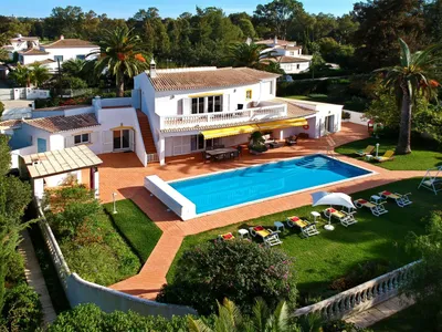This attractive villa is the family home of the owner and his family and was furnished and equipped as a home and not as a holiday villa. It is situated in the grounds of the world-famous Penina golf resort. The well-known Hotel Penina and the Penina Golf Club with three golf courses (Championship, Resort and Academy), tennis courts and hotel amenities are a leisurely 15-minute walk away. The market town of Portimão, with good shopping and fresh fish restaurants (especially good for sardines), is only a 10-minute drive away and it is the same to the resort and long sandy beach of Alvor. Praia da Rocha is an inexpensive taxi ride away for some nightlife and then there are several restaurants within a few minutes’ drive.The villa itself is at the edge of a group of villas, the poolside and the main terraces are surrounded by gardens and trees so are not overlooked. The large plot is 2,800m² and is completely fenced and gated, with an inner gated area around the pool and pool terraces as well as the outer area that encircles the house. Both areas are well-tended with mature shrubs and trees. The villa includes a security alarm and air conditioning in all bedrooms and living-room. The villa has been furnished with families and comfort in mind, including some good fun extras like a table tennis table, football table game and basketball net. There is even a jacuzzi available at a small extra cost.
