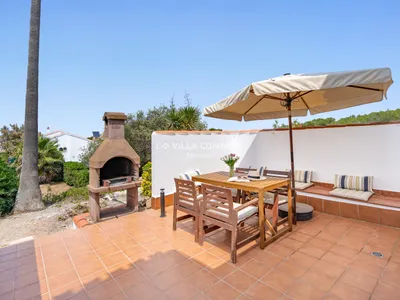 Arenal d’en Castell is located on the northeast coast of the island. The resort offers a variety of bars, restaurants and supermarkets, all within walking distance from the house. The beautiful white sand beach with crystal clear waters is a 5-minute walk away and is ideal for families with young children. Other north coast beaches (Binimelá, Cavallería, Playas de Fornells), south coast beaches (Binibeca, Punta Prima, Alcaufar) and the capital town Mahon, can all be reached within 20 minutes by car.This duplex is part of a 4 property complex with communal gardens. At the front of the house is a private terrace furnished with table and chairs and a stone barbecue, ideal for al fresco dining. On the first floor, connected to the lounge, there are two balconies. The north-facing balcony boasts beautiful sea views and is furnished with bar stools and table, and the south-facing balcony is furnished with outdoor sofas for relaxing in the sun or shade.