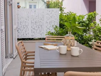 The apartment has a private courtyard with external seating accessed via the double patio doors in the double bedroom and door in the kitchen. Perfect for relaxing in the cooling evening air before experiencing the nightlife of Argostoli.