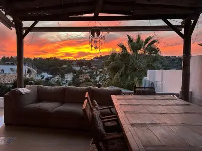The villa consists of: Entry level 2 lounge areas, a beautiful dining room with splendid views, a modern kitchen and a full bathroom. Downstairs , accessed via internal spiral staircase :4 good size bedrooms with a family shower room. Below, is a small studio apartment with shower room . This makes a perfect den for the children to hang out, and take a rest from the sun, or as a 5th bedroom. The villa is surrounded by typically Mediterranean garden on all sides and on different levels surrounded by orange & lemon . Fruit trees and plenty of shady areas mixed together with a private swimming pool and play area. The kidney shaped pool is in the sun most of the day and sits next to a covered BBQ area for BBQ s and enjoying the magnificent sunsets and for full sun lovers the roof top Terrence is the perfect sun trap with sea views of Calpe.