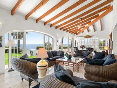 Property Description:Luxurious beachfront villa in Binibeca, Menorca, featuring exquisite interior design in the spacious living and dining areas with exceptional sea front views. The property includes four double bedrooms, each with en-suite bathrooms and air conditioning in every room for maximum comfort. Enjoy the private pool terrace with direct access from each bedroom in the villa.