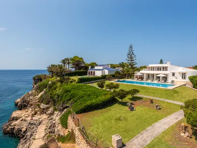 This cliffside villa is located in Cala en Brut, a residential area on the north-western coast of the island with a stunning turquoise-blue cove surrounded by rock platforms. The property is a short walk from the variety of bars and restaurants at the Los Delfines resort and less than a 10 minute drive from the island´s old and charming capital, Ciutadella. The small beaches Cala en Forcat and Cales Piques are within walking distance, and the virgin beaches Algaiarens and Cala Turqueta can be reached within 25 minutes by vehicle.Villa Rocamar boasts spectacular sea views from the garden area, which has privileged access to the bathing platforms and the Mediterranean Sea directly in front of the property. Bordering the large swimming pool (15m x 6m) is a grass lawn and sunbathing terrace furnished with comfortable sun loungers. Connected to the house, a covered porch with a large wooden dining set is the ideal spot for al fresco dining and outdoor living.