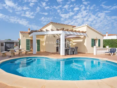 Villa Oceana is situated in a cliff-top tourist resort, Cala’n Porter, on the south coast of the island and only a 10 minute drive from the airport. The town has everything within walking distance, with a variety of bars, restaurants, supermarkets and souvenir shops. The wonderful beach with crystal clear waters can be accessed via road or steps and offers two beach bars serving local tapas and beverages. Other south coast beaches (Binibeca, Punta Prima, Binisafúa, Son Bou) can be reached within 15 minutes by car, and the capital town Mahon is also only a 10 minute drive away. Car hire is available from the resort and a daily bus service runs between Cala'n Porter and Mahon.Surrounding the kidney-shape swimming pool is a spacious terrace furnished with loungers for relaxing in the sun and two outdoor tables for al fresco dining and cooking with the stone barbeque.