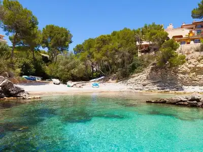 We are located in the privileged location of South West Mallorca, a small village with 2 small coves, 3 restaurants, a small shop and a couple of family owned hotel cafe terraces overlooking the beaches. All these are within 5-10 minute walk.