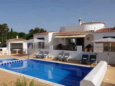 Casa ColinaA fantastic and comfortable air-conditioned 4 bed villa in the leafy and quiet area of Vale de Milho, a short drive of a few mins or 20-25 mins walk to the centre. The villa will sleep up to 8 adults (or mix of adults and children) plus 1 baby in a cot. A cot and highchair are included in the price. There are 4 bedrooms, two twins and two doubles, (latter with guests valuables safe) and 3 bathrooms, two of which are en-suite. The two twin rooms can remain as twins or can be joined to make double beds.