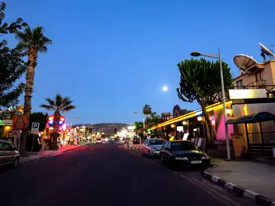 Coral Bay at 300m is easily accessible due to wooden decking at the entrance to help you walk to the sun loungers etc. Being a bay the sea is usually very calm and warm, with soft sand underfoot, no stones. Corallia beach a little further is similar, just on a smaller scale. 5 minutes’ walk in the other direction brings you to the famous Coral Bay Strip itself, which has something for all ages, a wide variety of tavernas, bars and shops. For the village experience Peyia is about 10 minutes’ drive, and has many good taverns, bars and shops including Papantoniou bakery.