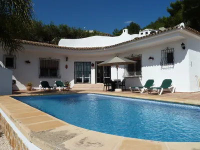 A private and secluded Spanish holiday villa in Costa Blanca – with 3 bedrooms, Air Conditioning, BBQ area, private pool, WiFi and close to the beach. Situated just outside Moraira in Benitachell, this luxurious villa has stunning panoramic views and is available all year round for your self catering holidays and romantic getaways.Villa Almoradi is a charming private family villa with Air Conditioning and Wi-Fi close to the old fishing port of Moraira. It is situated in Benitachell in the quiet residential complex of Villotel, approx. 3kms from the beautiful sandy beaches of El Portet and L’Ampolla Beach, Moraira.