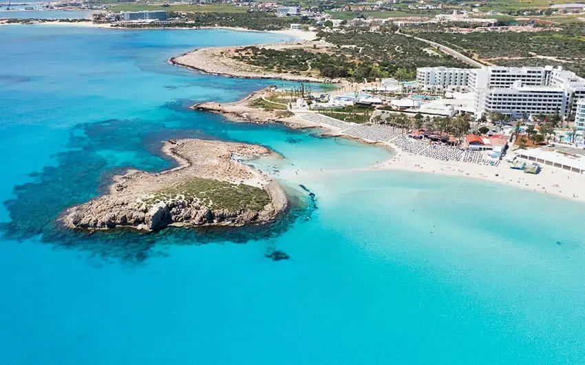 Larnaca is probably the best airport to use if you want to visit both North and South Cyprus. Crossing the border is getting easier, especially on foot, be sure to check with any car hire companies however to see if they allow a border crossings. Cyprus is warm all year round and its climate has attracted holidaymakers for hundreds of years. Aphrodite the Goddess of love was born in Paphos which is a very popular holiday destination with miles of fabulous beaches, a dozen or more being awarded Blue Flag status. Other popular resorts are Limassol, Ayia Napa and Protaras where you will find both sandy and rocky coastlines.
