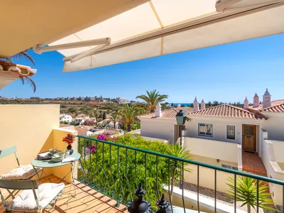This lovely duplex townhouse property is located on Vila Castelo resort which is mere 3mins walk from Praia Grande beach and about 5-7mins walk from the quaint Ferragudo town centre. There are views from the terrace/balcony towards the sea and Portimao Marina and town.The property is on two levels: the main entrance level is an open plan with fully fitted modern kitchen, dining and sitting areas opening to a balcony with a light colour scheme throughout and plenty of natural light. There is also a separate WC with a toilet and a sink next to the kitchen.