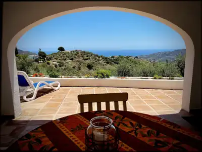 All stays 5 nights and over will receive a welcome pack which includes a bottle of wine, bread, eggs, butter and cheese. The covered terrace and cool alfresco dining area, equipped with a ceiling fan, leads to a large open terrace with a gas BBQ and to your own private secluded swimming pool where you can relax and take in the peace and tranquility of La Quinta. Also featuring a fully equipped kitchen with everything you could possibly need to prepare delicious food: A Chefs delight! It includes dishwasher, washing machine, automatic drip coffee machine and french press, a full range of kitchen equipment, utensils, tea towels as well as kitchen essentials such as salt, pepper, olive oil, vinegar, spices, coffee, tea, sugar and cleaning products. The spacious sitting room features TV and WiFi (Max 100Mbps) with a Fire TV stick featuring Netflix and Amazon Prime for you to log into your own accounts should you wish. Three sofas and cushions for your family to lounge on, one of which becomes another double bed for guests with five or six people. Our property has been maintained and looked after by ourselves for the last eight years and we leave nothing to chance, we clean and service the whole apartment ourselves so you can be assured of a high standard of cleanliness and functionality. La Quinta is protected by a modern whole house water filtration system and we also provide a filter jug in the kitchen so the water is perfectly safe to drink. You can find in the sitting room a variety of reference and reading books for you to enjoy throughout your stay. The apartment is completely self contained and has it own private independent front and rear entrances. It is in the lower part of a country house built in a traditional rural style. The Property is set in beautiful Andalusian countryside in its own gardened grounds and guests are welcome to take a walk around it and enjoy an early evening cocktail. The property is reached down a concrete exterior drive from the tarmac road and is accessible for taxis as well as cars. There is parking available inside for 2 cars. The backdrop to the apartment is of the mountains of the Parque Natural Sierra Tejedas, Almijara y Alhama, renowned for its walking trails, and the stunning views to the front are of the surrounding countryside and opens down to the Mediterranean sea. There are three well behaved pet cats living on the property. The white village of Frigiliana, which is said to be one of the most beautiful in Andalucía is a 3-minute-drive away. Frigiliana has many restaurants and shops as well as banks and a local bus can take you from there to the coastal town of Nerja about 10 minutes further on. Nerja is a popular town, which still retains its original charm although sympathetically developed over the years. Nerja, famous for its Balcon de Europa, its caves and its various beaches, has many bars and restaurants, vibrant nightlife, shops, outdoors adventures outfitters and supermarkets. The apartment is also ideally situated as a centre for exploring other areas of Andalucía, being under an hour from Malaga, 1 hour from Granada, 2 1/2 hours from Cordoba.