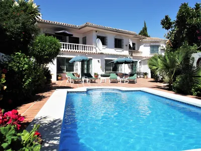 A lovely, large 4 bed, 4 bath, duplex villa with private pool, set in the picturesque surroundings of Torreblanca, an exclusive hillside development between Benalmadena and Fuengirola.Located close to blue flag beaches, golf courses, restaurants & bars and yet only 20 minutes drive from Malaga airport. The villa is split into 2 individual, self contained apartments that occupy independent levels, which is Ideal for separate families who wish to holiday together, but still retain personal privacy and space. The apartments are connected by an outdoor staircase, which also leads to the pool and terrace and to the Gazebo lounge & bar area.