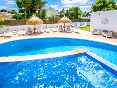 Villa Cascada is an 8 bedroom luxury villa with everything you need closeby - a supermarket is 250 metres, and the nearest restaurants and bars are a 5 to 10 minutes stroll. Chill by the poolside Tiki bar, with swim-up seating within the bubbling spa/splash pool. This villa was completely renovated in 2020, and further in early 2025, and is decorated in a Ibiza/Mexican style - think “Ibiza Cool” but without the compromise on comfort.This is an amazing villa for families or large groups of friends. With a large outside table enabling everyone to dine together at the same time, plus a Summer Kitchen with large gas BBQ, pizza oven, and more. There’s even a large 4K TV here - so you can watch sports outside in the shade.