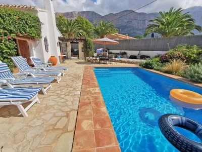 Lovely spanish finca overlooking the valley of Javea. 3 bedrooms, 2 bathrooms, wifi and airconditioning. All on one level. Aircon in the main sitting area. Private pool. Large garden with private parking and bbq. Sunloungers with umbrellas. Fully private. Southfacing with beautiful views over the valley. Walking distance to restaurants, 10 minutes drive to the Javea port. Beautiful holiday spot.Please ask us for last minute deals and availability.