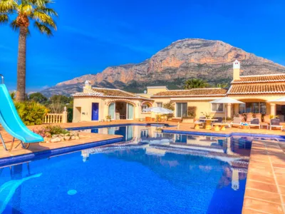 Miramonte is a large spacious villa in a very quiet residential area, flat plot and totally private. The villa includes a large lounge with fire place, dining area, spacious kitchen with access to the garden. There are 4 bedrooms in the house 3 king size and one double and with 3 en-suite bathrooms and a family shower room. To the rear of the villa is a large open naya leading to the luxury Mediterranean gardens and huge 12m x 10m pool. In addition, the villa includes an apartment with its own fully equipped kitchen, lounge area, bathroom and bedroom with a further queen size double bed, 2 additional comfortable folding beds are available for guests use in the villa. Outside you can enjoy a fully equipped summer kitchen including BBQ, grill, pizza oven, breakfast bar with outside additional shower and toilet along with the lovely Mediterranean garden with views to the mountain beyond. The villa has air conditioning in all bedrooms, central heating, several open terraces with wonderful open views, lounge seating, exterior shower, storeroom, Wifi, satellite TV, ping pong table, football table, driveway with parking for several cars.Golf: Within 10 minutes drive of the villa is La Sella Golf Club. The Olazabal designed La Sella Golf Course is near the village of Jesús Pobre. The course has 27 holes, par 72 and is 6,029 metres for 18 holes. The course although flat has many trees and water obstacles and presents a very good challenge. Facilities include : driving range, putting green, motorised trolleys, club bar, lounge bar, restaurant and swimming pool.
