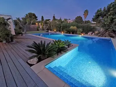 These two villas are built on the same plot of 3000sqm connected and each with it's own entrance and privacy.The first villa is a large finca style property with 4 bedrooms, 3.5 bathrooms, several terraces, sitting and lounge areas and very large 12 x 6 meters pool wth roman steps.