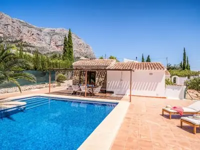 Casa El Formet, a charming 3-bedroom villa, is the perfect haven for families seeking ample space to unwind and enjoy their vacation. Nestled in the pristine 'Montgo National Park,' this villa occupies an exclusive corner of Javea, offering an idyllic and stress-free holiday experience.The extensive south-facing terrace, graced with a 9m x 4m pool, provides a stunning vista of the majestic Montgo mountain. Basking in sunshine for 10 hours a day, the 'Pool Area' is an ideal spot for sun enthusiasts. Here, you can lounge on sunbeds or relax in a comfortable seating area, ensuring that everyone in the family finds their own piece of paradise.